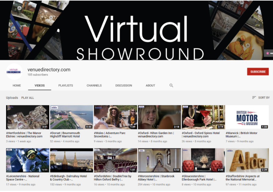 As a meeting planner with the world in lockdown, you have still got work to do, you have got to find the next venue for your sales conference, maybe a product launch for when we're out of this crisis or even the next series of training courses on how to deal with crisis management. As a meeting planner visiting venues to get the look and feel of the place is vital in making the right venue selection, but whilst we are all in lockdown a video play through, or a 3D representation or a combination of both can be a really useful tool. Venuedirectory.com is a great place to start and we have our own YouTube channel that has the largest number of venue videos available to you as a meetings and events planner, and you can do all this right from your home office.